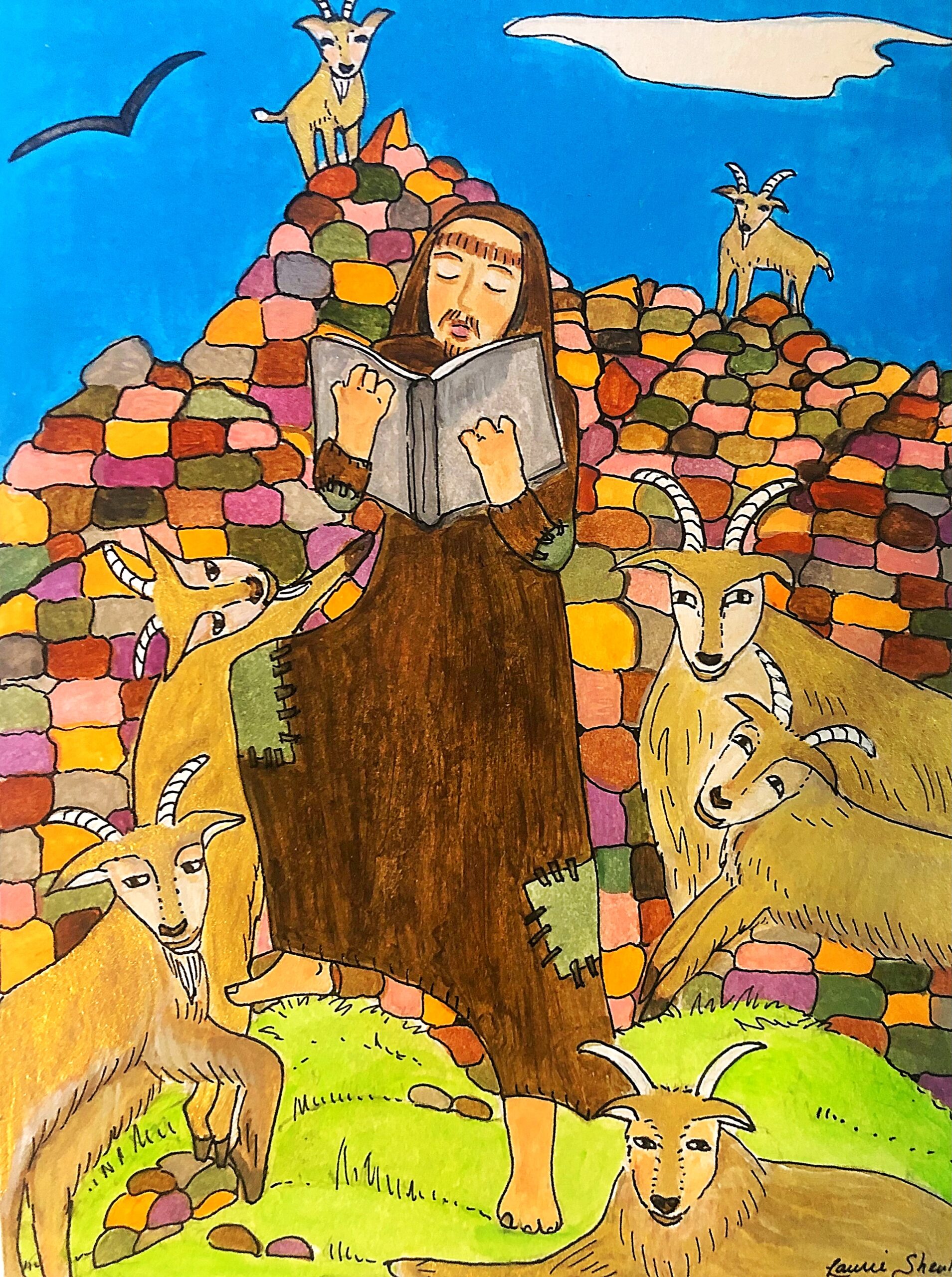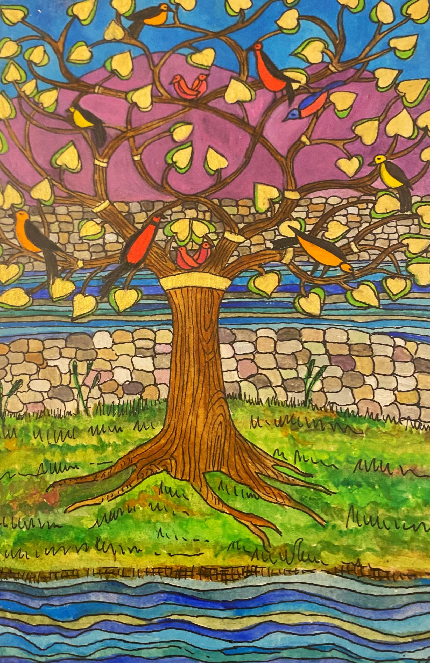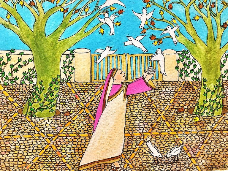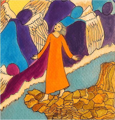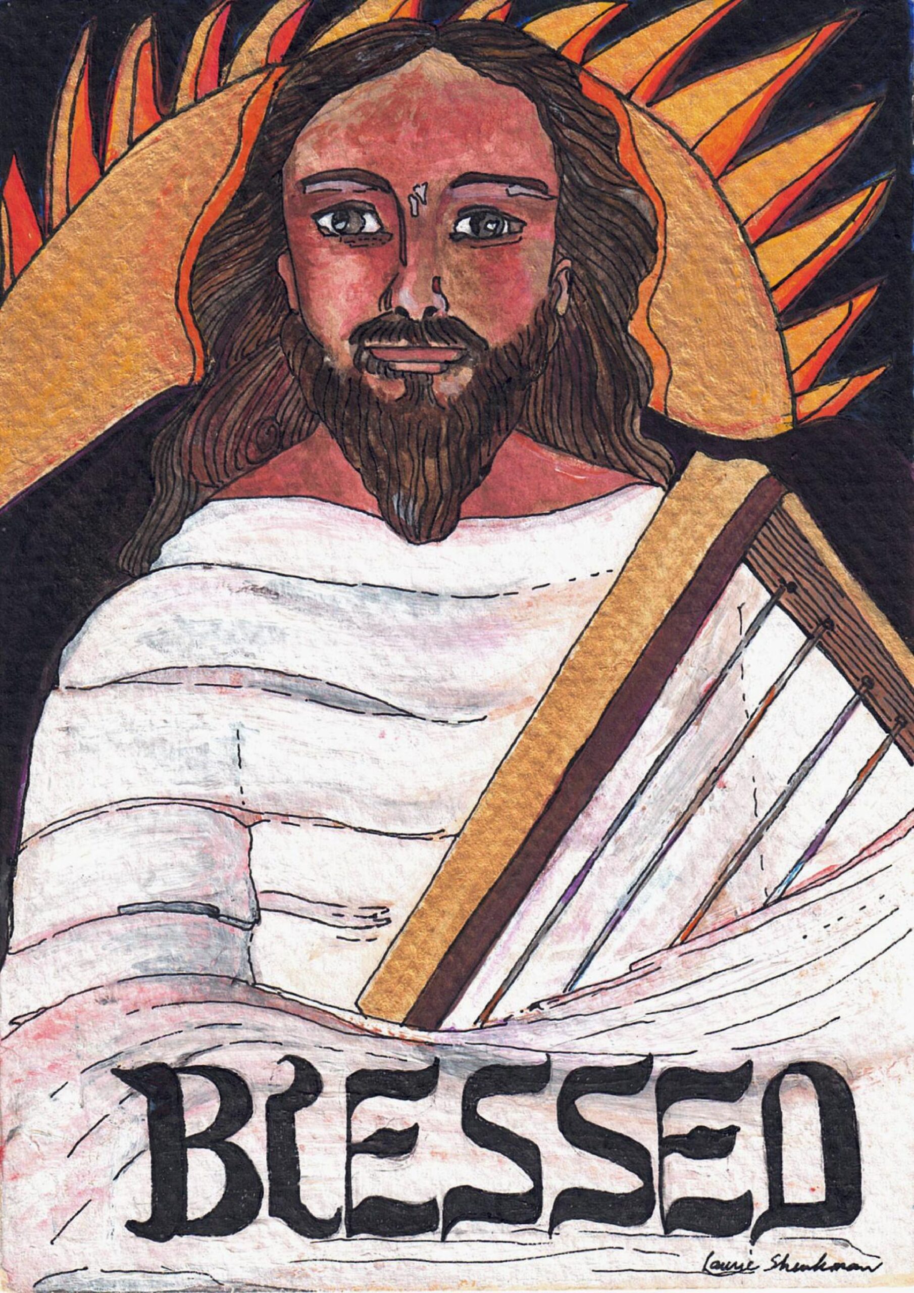 The Living Branch is a collection of scripturally inspired images that represent a contemporary expression of biblical verses and themes. Living Branch styles are distinctive, refreshing, and bold! Figures and details are crisp and precise! Designs seek to commune a reverential presence, like stained-glass windows of old, each with gilded treatments for a touch of splendor, reminiscent of medieval illuminated manuscripts. Currently, the Living Branch collection includes 36 styles, offered in 5” x 7” greeting card form with natural brown envelopes. Cards are available in packs of 6 or 12, either as an assortment or of one specific style. Packages are enclosed in clear plastic envelopes, secured with a golden tie, and tagged with a golden logo seal. The Living Branch also creates commissioned work for private individuals and non-profit organizations. Please request references or letters of recommendation. Suggested retail price on a 6-card pack ~ $25, 12-card pack ~ $50, or by donation.To facilitate order, shipping, payment or make a request for custom work please email: livingbranch3@rcn.com with a message of inquiry.