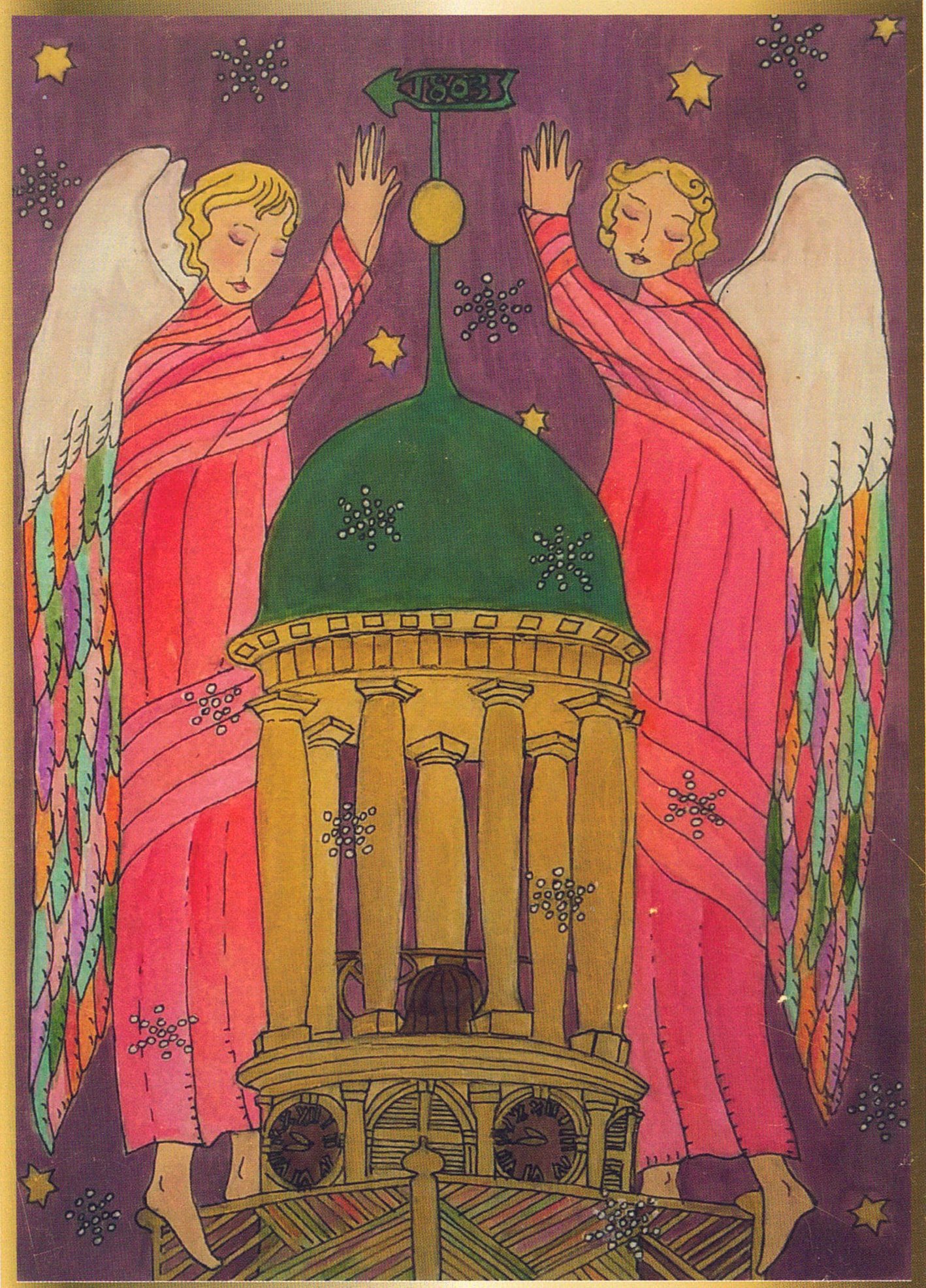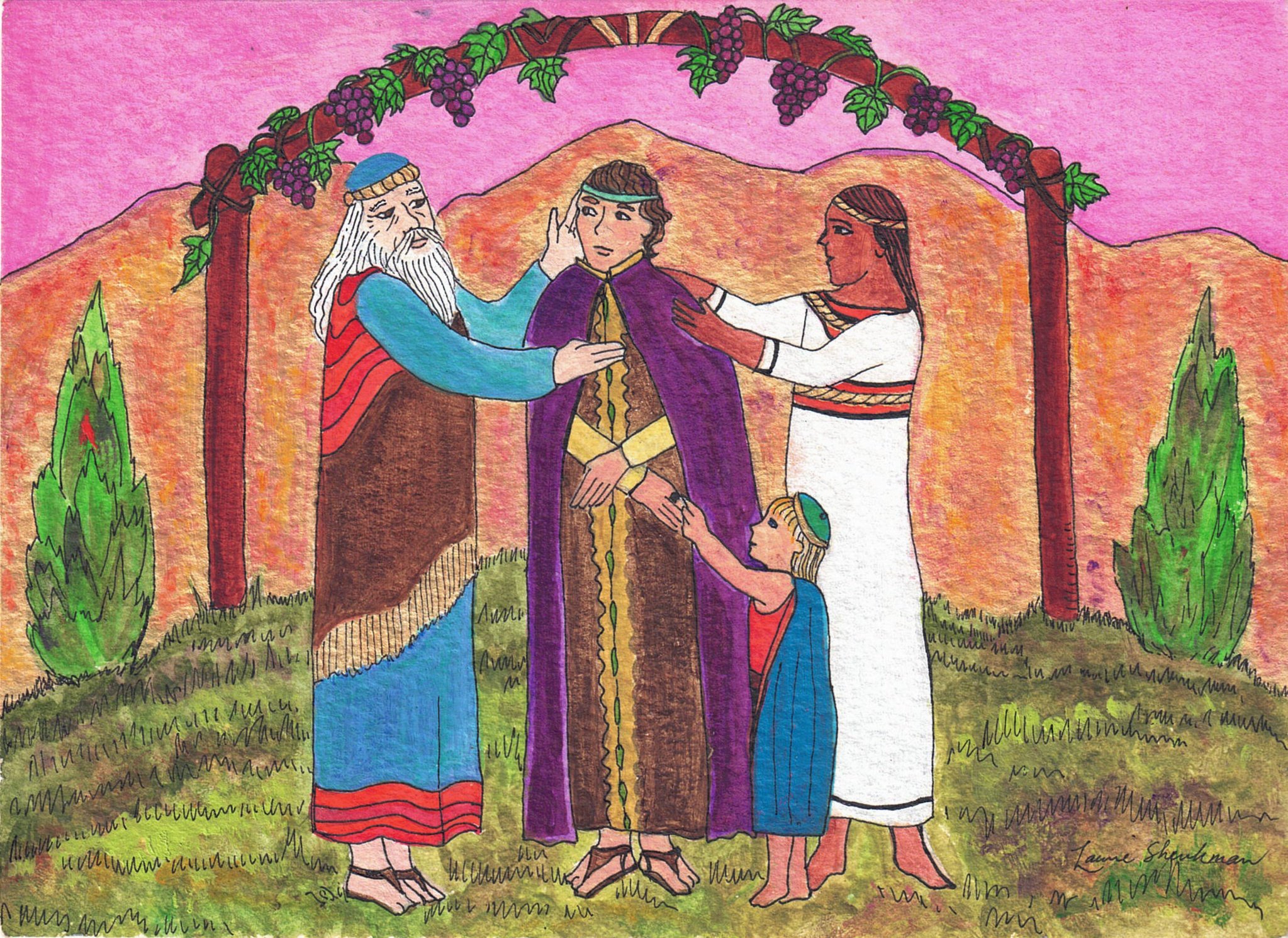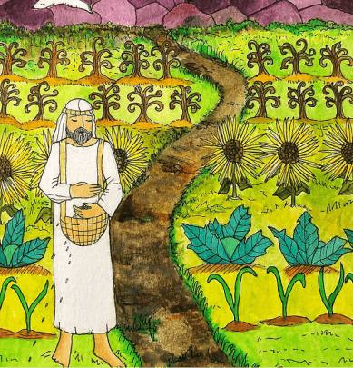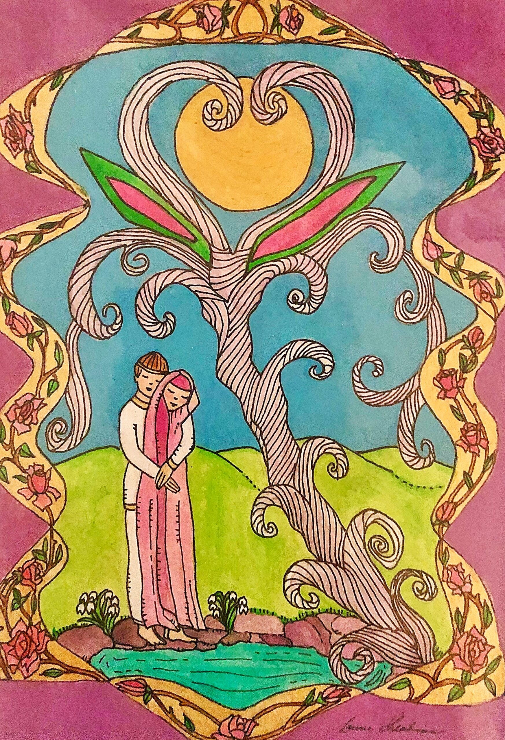 The Living Branch is a collection of scripturally inspired images that represent a contemporary expression of biblical verses and themes. Living Branch styles are distinctive, refreshing, and bold! Figures and details are crisp and precise! Designs seek to commune a reverential presence, like stained-glass windows of old, each with gilded treatments for a touch of splendor, reminiscent of medieval illuminated manuscripts. Currently, the Living Branch collection includes 36 styles, offered in 5” x 7” greeting card form with natural brown envelopes. Cards are available in packs of 6 or 12, either as an assortment or of one specific style. Packages are enclosed in clear plastic envelopes, secured with a golden tie, and tagged with a golden logo seal. The Living Branch also creates commissioned work for private individuals and non-profit organizations. Please request references or letters of recommendation. Suggested retail price on a 6-card pack ~ $25, 12-card pack ~ $50, or by donation.To facilitate order, shipping, payment or make a request for custom work please email: livingbranch3@rcn.com with a message of inquiry.